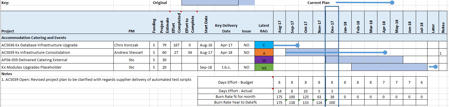 The only current activity is centred around the project ACS039 - Kx Infrastructure Consolidation.   As a result of the activity undertaken this month, a total of only 3 days have been utilised - this is mainly due to the continual delays with ACS039.