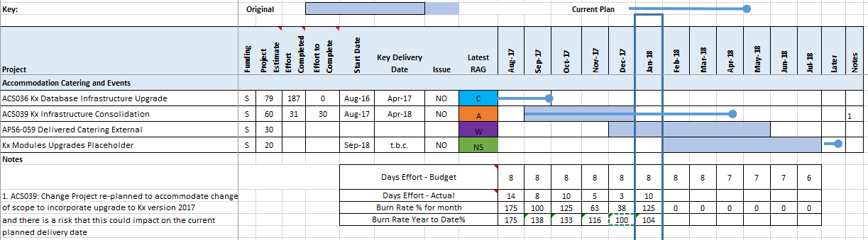 Amber - Project re-planned to accommodate change of scope to incorporate upgrade to Kx version 2017 and there is a risk that this could impact on the current planned delivery date