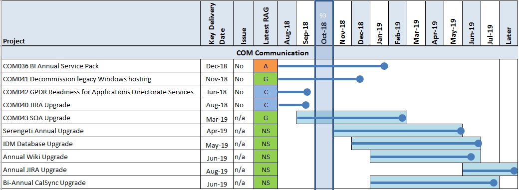 This has been another relatively straightforward month where work has continued on each of the three current projects. However, the work on COM036 has not been as simple as expected with some issues for the project team through the use of the migration tool. This has added effort to the project and pushed the milestones back. Despite this, delivery is still expected in December 2018. THe other two projects continue as planned and are believed to be on track to complete as scheduled.