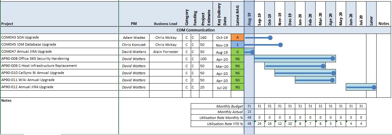 The figures and planning have all been published for the new financial year, and the first new COM project - Office 365 Security Hardening - is due to commence in September now that we have a PM for this one.