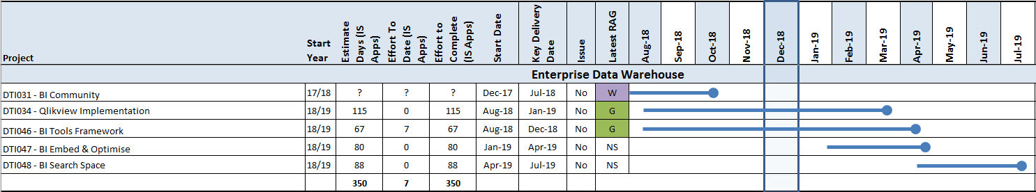 | DTI047 Embed & Optimise | Initiated. Planned Start Jan-19 | |