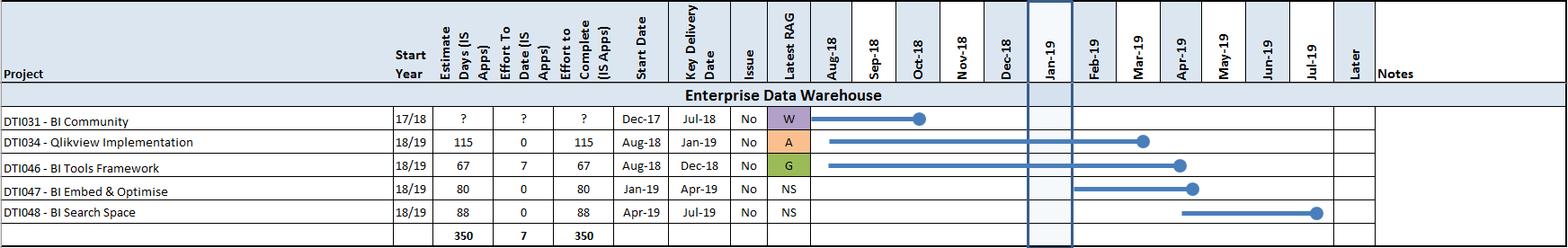 | DTI047 Embed & Optimise | Initiated. Planned Start Jan-19 | |