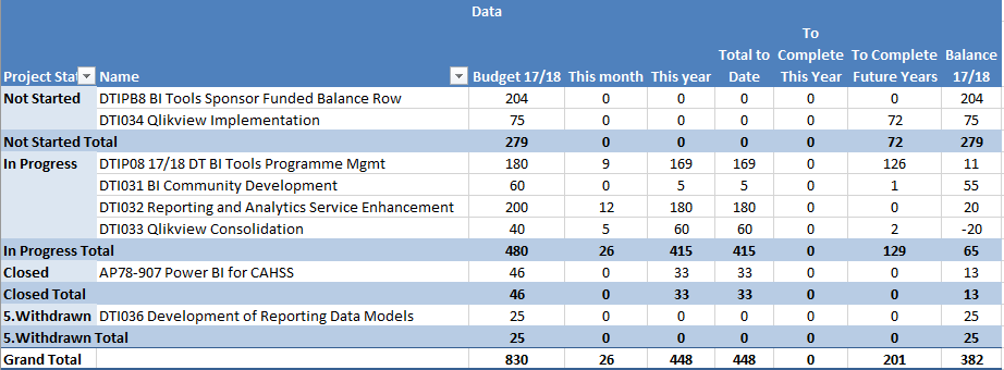 | DTI034 Qlikview Implementation | Planned Start Aug-18 | |
