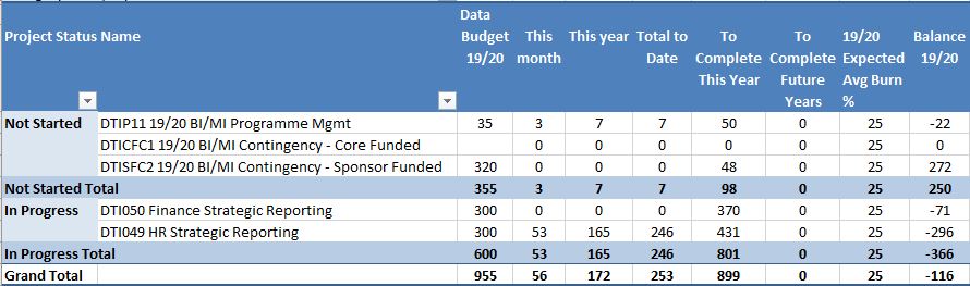 DTI050 - Finance Strategic reporting - has been started - planning stalled while focusing on HR Strategic Reporting