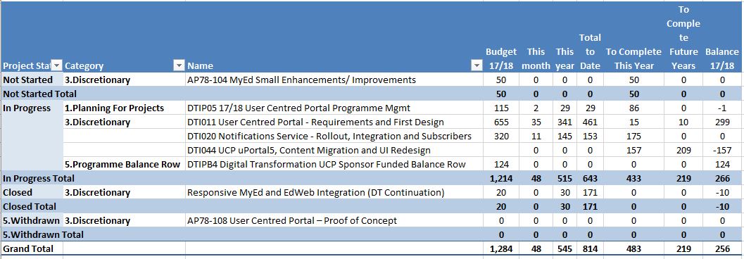 - Following discussions between DTI011/044 project team and MyED Service team now unlikely to require MyED Small improvements project of 50 days