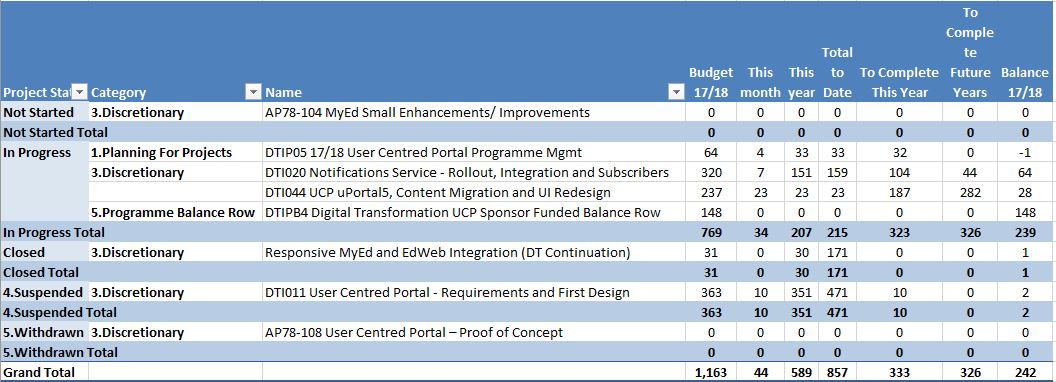 - DTI011 re-plan agreed and this project has now been suspended with resource budget being transferred to new project.