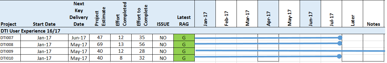 Overall the User Experience Programme is GREEN at this point in time, and on track.