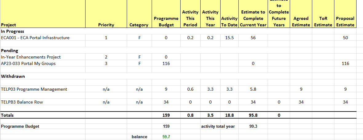 • Re-estimate the remaining work and transfer budget from the ECA 2012/13 budget