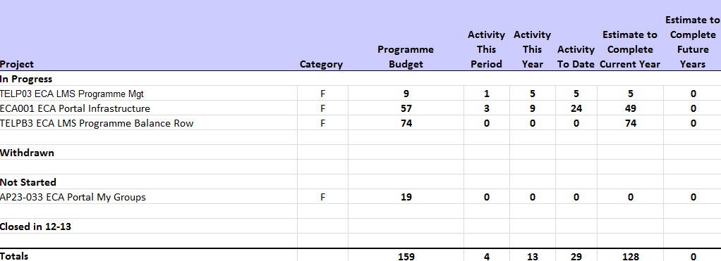 Also, ECA will use remaining budget after port to start a project to move ECA onto SMART, and therefore withdrawing remaining project MyGroups.