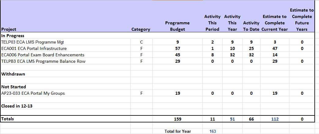 ECA is likely to start an Additional Portal Enhancements in-year project and, if necessary, the planned My Groups project in order to make full use of the remaining days in the budget for 12/13, as they now have 13/14 budget for carry over.