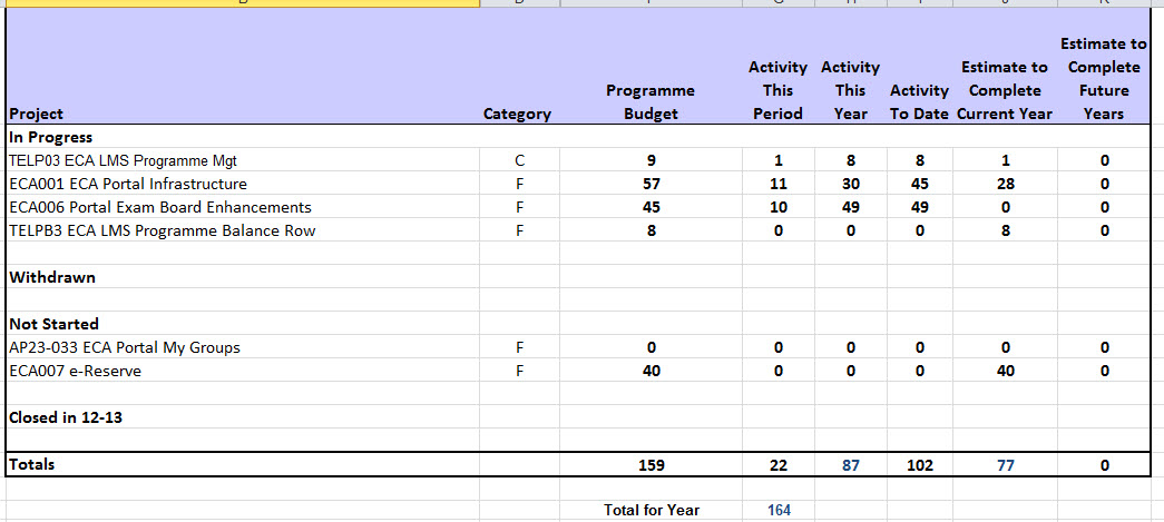 Also, a new in-year project ECA007 is needed to address a serious audit issue the portal has with copyrighted material. This aims to delvier by start of term.