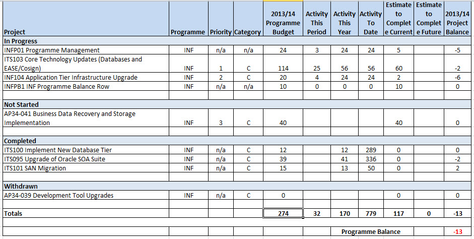 The projected total for the year has the programme running over by 13 days, but 10 of these are held in the balance row as contingency so we are still able to work towards a balanced budget.