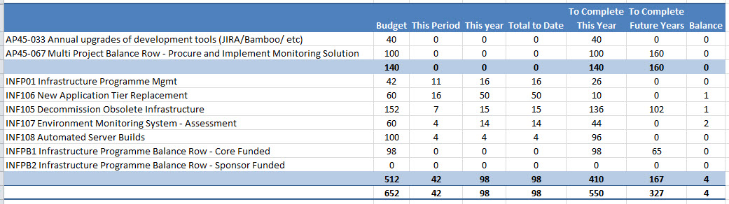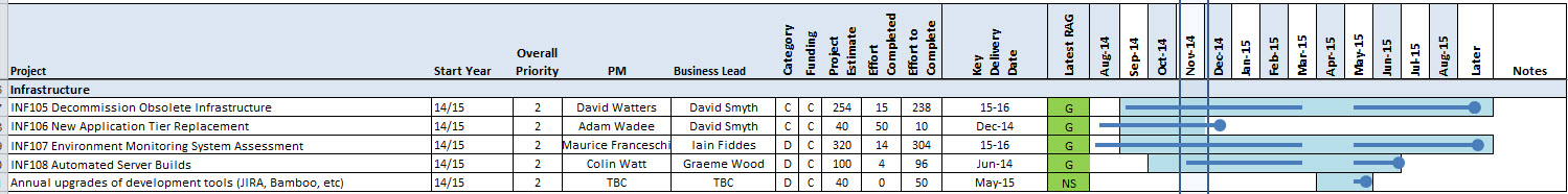 In fact, Programme Manager and Owner need to check that the burn rate on projects and the estimated effort will use up the planned budget - there is an possible opportunity of finding that we have more budget than we need to complete work this year. This wil be clearer by February.