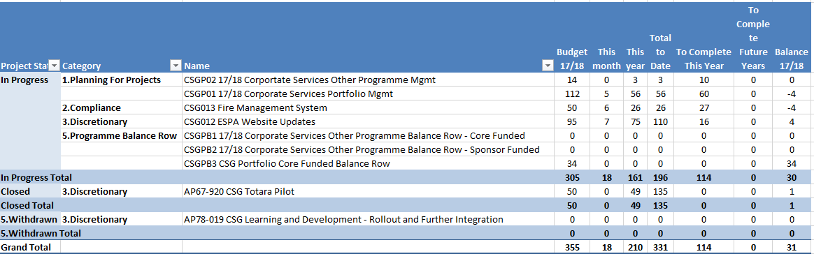 CSG Learning & Development - Rollout and Further Integration; Category: Discretionary (Sponsor funded) |