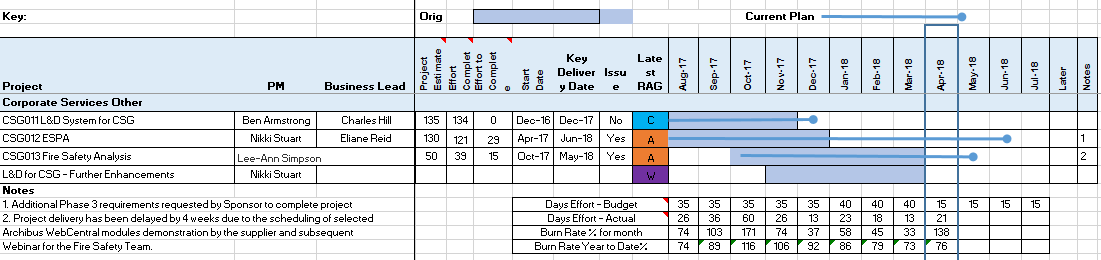 Rag Status: AMBER Change: Project delivery has been delayed by 4 weeks due to the scheduling of selected Archibus WebCentral modules demonstration by the supplier and subsequent Webinar for the Fire Safety Team to account for A/L during the initial demonstration. This has been approved by the project team and sponsor |