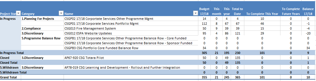 CSG Learning & Development - Rollout and Further Integration; Category: Discretionary (Sponsor funded) |