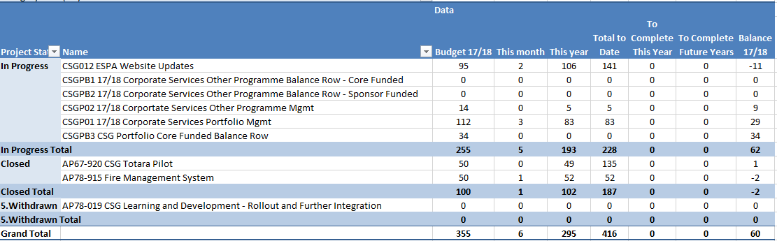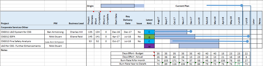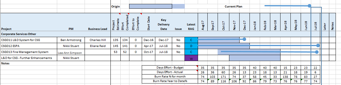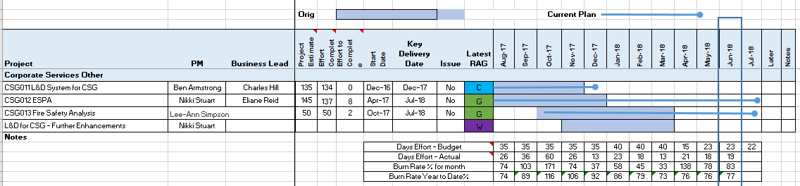 During July, the two active projects were delivered, however, the closure for CSG012 - ESPA will carry forward into early August 2018.