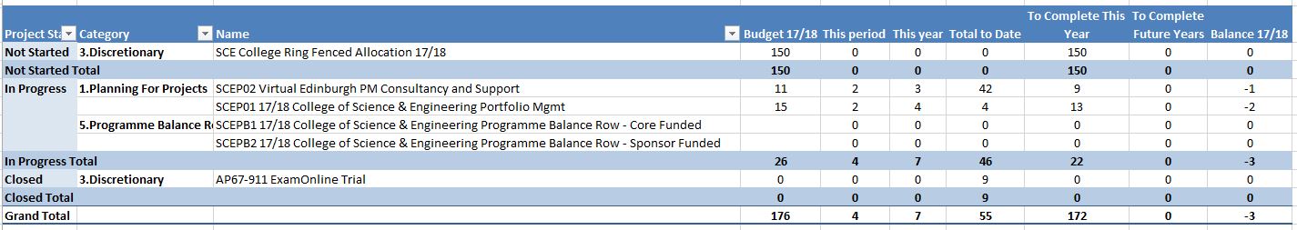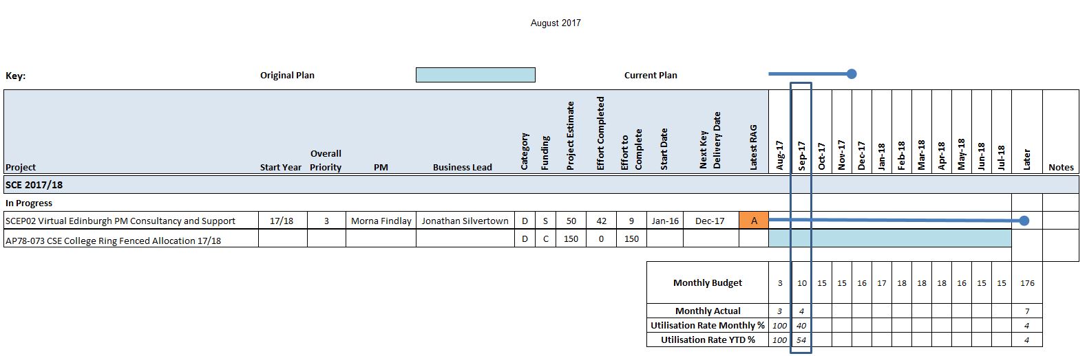 The only ongoing project, SCEP02 -Virtual Edinburgh PM Consultancy and Support , has the RAG status AMBER due the ongoing uncertainty around the participation in the CityDeal project. The overall status of the CSE programme is AMBER.