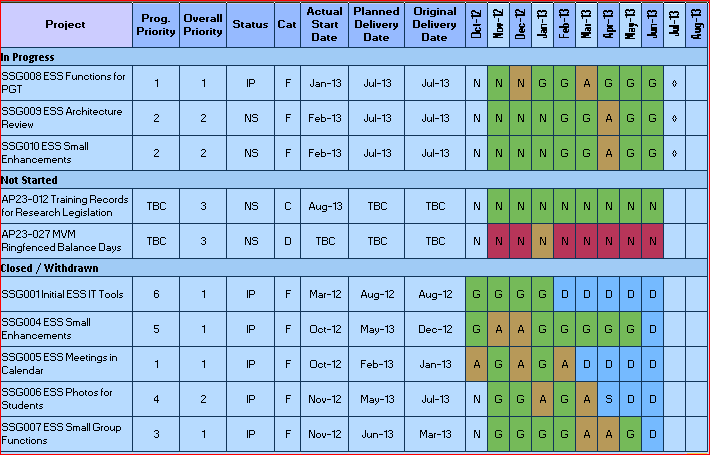 SSG009 (ESS architecture review): the reports are progressing for the first 3 meetings the project team had to review the current architecture of the Personal Tutor System, the St Andrews assessment build application and the School of Physics in-year assessment system. A last meeting is planned for end of July to review the last deliverable.