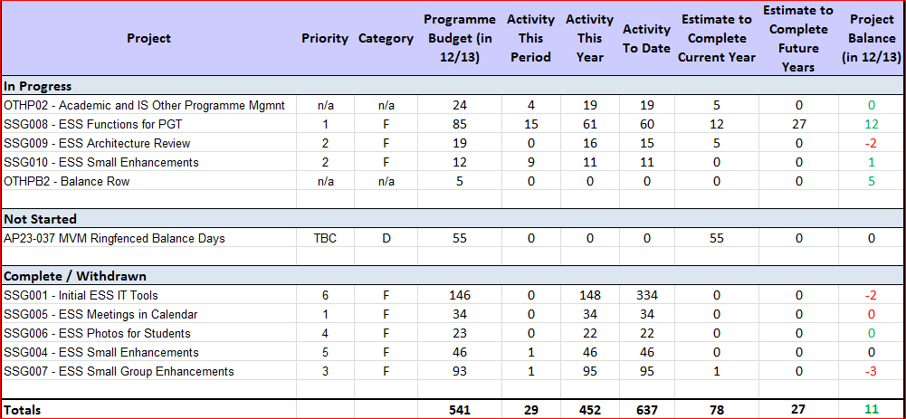 SSG010 Small Enhancement project has been descoped and the days left have been moved to SSG008 post go live project to be done in 12/13 and 13/14.