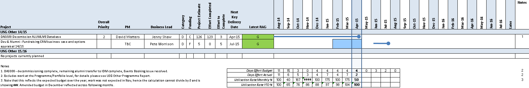 RAG Status GREEN | Report for April 2015 by David Watters Achievements this Period