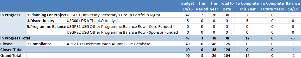 The portfolio budget is expected to be over by 2d at the end of the year, less than the 10d expected due to less work on the Data Governance Group and for the BI/MI Project Board than estimated earlier.