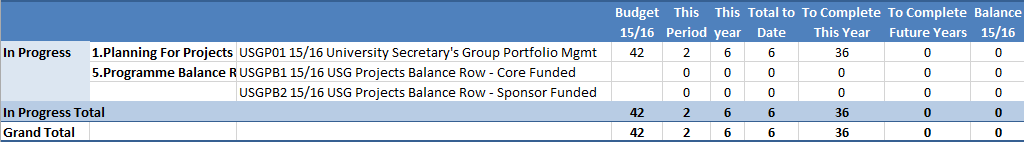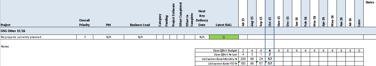 There are no projects currently planned in the Other USG programme for 15/16 and so the Resources table below shows effort at the USG Portfolio level only.
