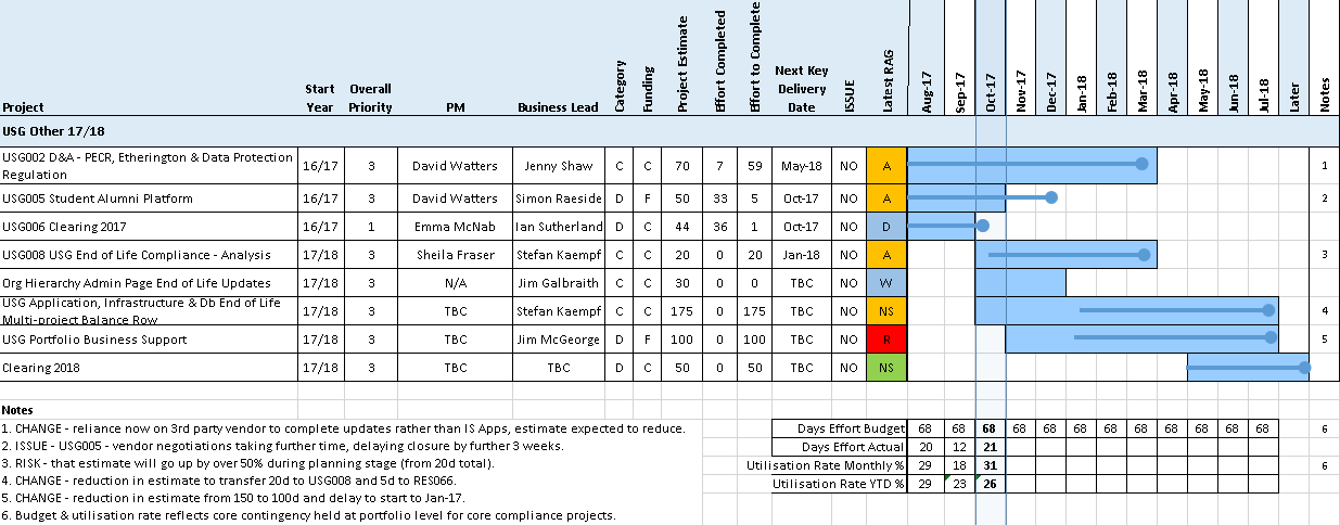 Overall the USG Other Programme is AMBER, as there is still one potential project that may need to be included in the USG portfolio for completion ahead of the May 2018 GDPR deadline that is not currently in the plan.