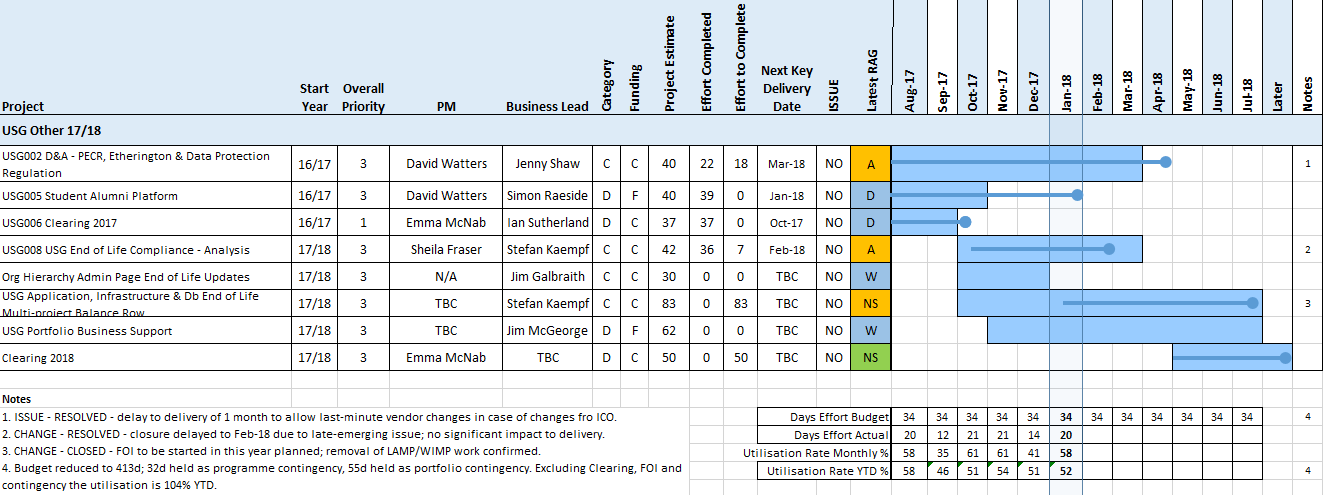 Overall the USG Other Programme is GREEN, as it is expected that planned essential work can be completed in this year. This is GREEN with the note that the utilisation rate is low due to: