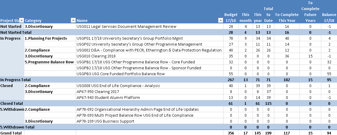 There are no projects that have been closed or withdrawn in 17/18 to date.