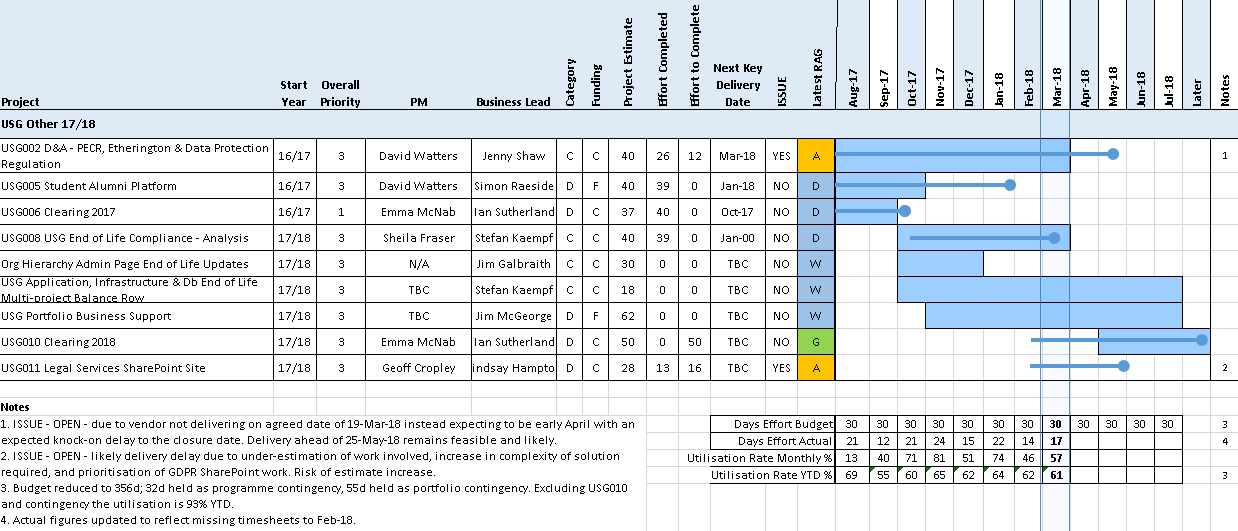 Overall the USG Other Programme is GREEN, as it is expected that planned essential work can be completed in this year. This is GREEN with the note that the utilisation rate is low due to: