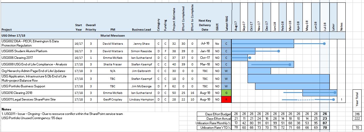 USG011 Legal Services SharePoint Site is unfortunately delay by another resource conflict in the SharePoint service management team which has delayed the completion of the UAT (due 18 July). This work is now expected to complete in August.