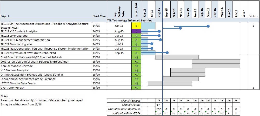 RAG Status AMBER | Report by David Watters for August 2015 Achievements in Last Period- Live deployment of Learn, PebblePad & QMP elements