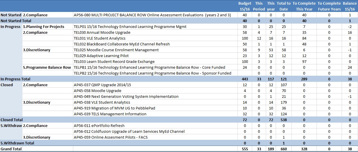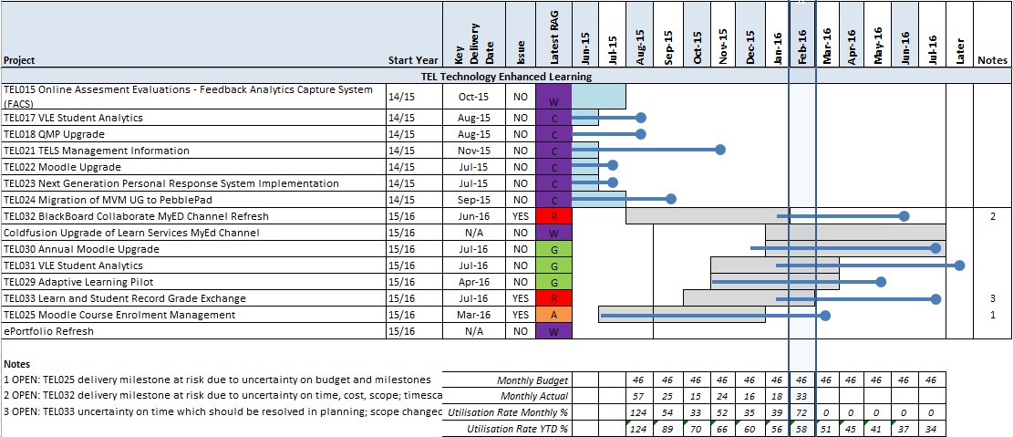 TEL Programme Report compiled by Colin Watt, (IS Apps Programme Manager) for Programme Owner Anne-Marie Scott