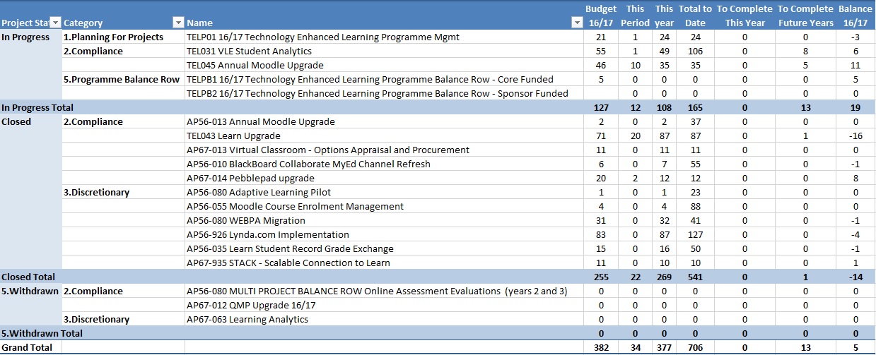 TEL Programme Report compiled by Colin Watt, (IS Apps Programme Manager) for Programme Owner Anne-Marie Scott