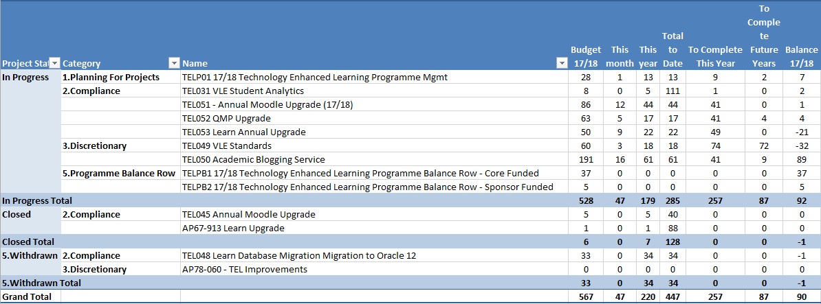TEL Programme Report compiled by Colin Watt, (IS Apps Programme Manager) for Programme Owner Anne-Marie Scott