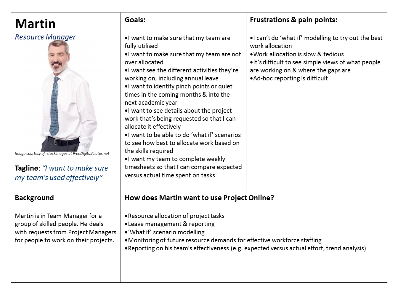 The following 8 personas have been identified as representing the different types of users that might want to interact with Project Online: -