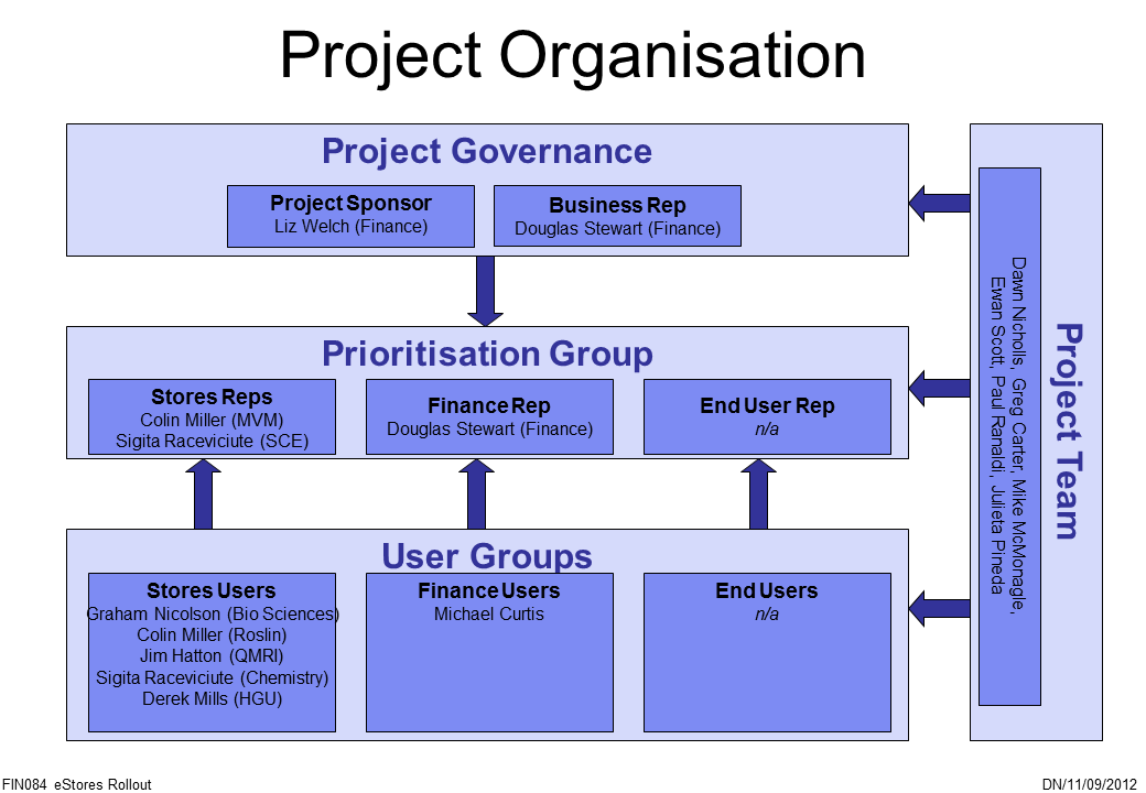 There will be costs incurred for barcode scanners for use at the Stores (estimated at £200 per scanner), but this cost will be born by the Stores themselves and not the project.  The Project Team will also need a scanner for the duration of the development, but this will be passed to Finance once the project closes so that they can effectively provide support for the application.  Who will pay for this extra scanner?