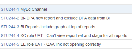 1. Following User Testing feedback end July, 5 user stories are being seen as required for the pilot and are being done under project STU244 with the aim to have them delivered in Sept:
